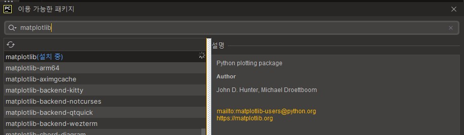 혹은 파이참 인터프리터 창을 열어서 설치해도 된다.