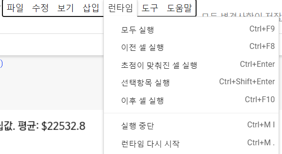 - 모든 셀 재시작(ctrl + F9) 을 눌러 재시작